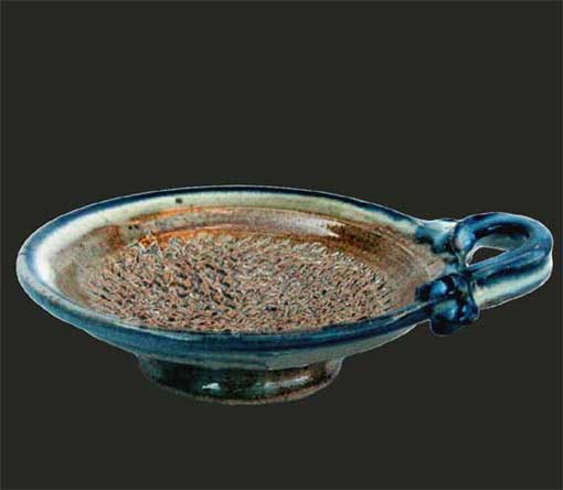 Grès cuit à 1300° - Décor aux engobes (fer, cobalt et porcelaine) à la poire sur terre crue. Email à base de cendres de sarments.