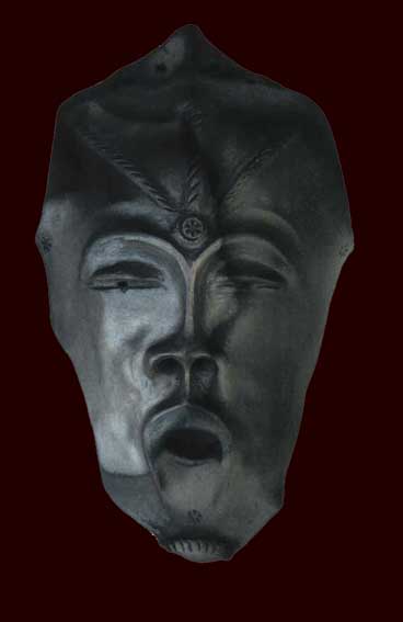 Masque en argile rouge poli au galet cuisson noire enfumée