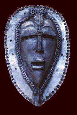 Masque en argile rouge, poli au galet, cuit au four à bois avec enfumage en fin de cuisson qui donne la coloration noire à la terre.