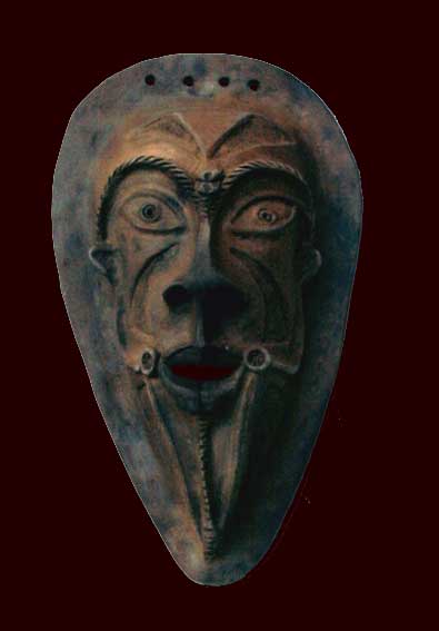 Masque en argile rouge cuit en "meule"(feu ouvert). Certaines parties du masque sont polies