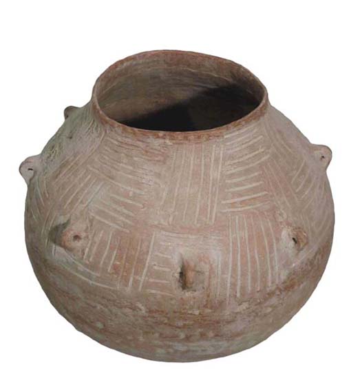 Poterie modelée aux colombins, polie au galet , cuite en "meule" et patinée pour donner un aspect ancien